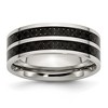 Chisel Stainless Steel Polished with Double Row Black Carbon Fiber Inlay 8mm Band Ring - 1 of 4