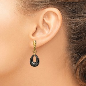 Crafted from polished stainless steel and finished with gold-tone IP plating, these earrings feature a sleek 14 mm width and a modern drop & dangle design. The post and push back closure ensures secure, comfortable wear--perfect for adding everyday elegance or a subtle statement. Sold as a pair