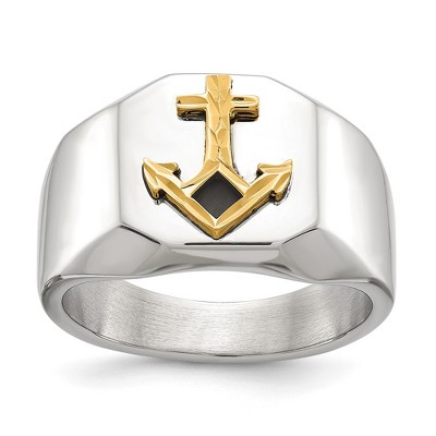 Make a bold statement with this polished stainless steel signet ring, finished with durable gold-tone IP plating. Featuring a classic square top measuring 12.5 mm by 12.5 mm, this ring offers a timeless look with a comfortable standard fit