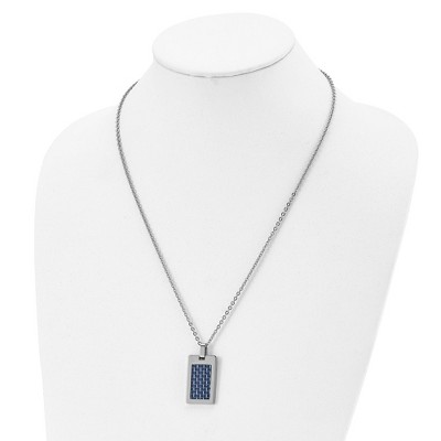 Elevate your style with this bold and modern stainless steel pendant necklace. Featuring a polished finish and a black carbon fiber accent, this piece adds a sleek and contemporary edge to any look. The 52mm x 32mm themed pendant includes gold-tone highlights, enhancing its masculine appeal. Suspended from a sturdy 22-inch box chain with a lobster clasp, this necklace offers both style and durability—perfect for everyday wear or special occasions.