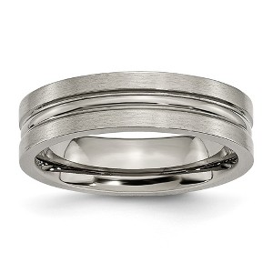 Chisel Titanium Brushed and Polished 6mm Grooved Band Ring - 1 of 4