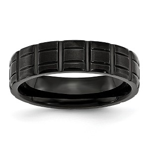 Finish:Polished & Brushed|Plating:IP-Plated|Band Width:6 mm|Material: Primary:Titanium|Ring Fit:Standard|Sizeable:No|Thickness:< 2 mm|Width of Item:6 mm|Texture:Grooved|Material: Primary - Color:Grey|Ring Type:Wedding Bands|Edge Type:Notched|Plating Color:Black