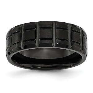Finish:Polished & Brushed|Plating:IP-Plated|Band Width:8 mm|Material: Primary:Titanium|Ring Fit:Standard|Sizeable:No|Thickness:< 2 mm|Width of Item:8 mm|Texture:Grooved|Material: Primary - Color:Grey|Ring Type:Wedding Bands|Edge Type:Notched|Plating Color:Black