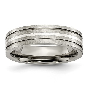 Chisel Titanium Brushed with Sterling Silver Inlay 6mm Grooved Band Ring - 1 of 4