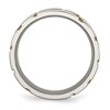 Elevate your everyday or special occasion style with this modern 8mm titanium wedding band. Featuring a brushed finish with grooved detailing and gold-tone IP plating, this flat-profile ring offers a sleek, masculine look. Crafted from lightweight yet durable titanium, it ensures lasting wear and a comfortable fit for daily use.