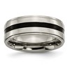 Chisel Titanium Polished Black Enamel 8mm Ridged Edge Band Ring - 1 of 4