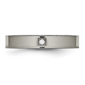 Chisel Titanium Polished with Cubic Zirconia 4mm Flat Comfort Fit Band Ring - 1 of 4