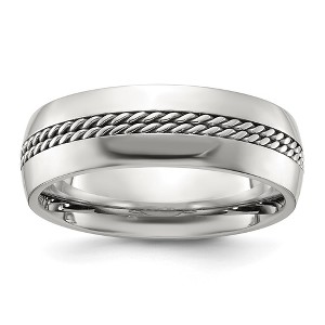 Chisel Titanium Polished with Curb Chain Inlay 7mm Band Ring - 1 of 4