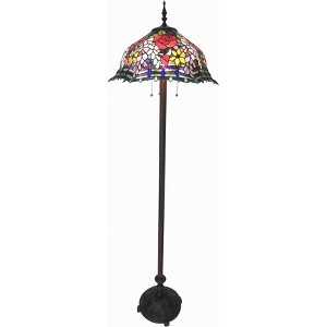 Illuminate your living space with the classic elegance of the Chloe Lighting Carrell Roses Floor Lamp. Standing at 61″ tall, this stately lamp features a 20″ round stained-glass shade showcasing a breathtaking rose motif crafted from 740 hand-cut pieces and adorned with 66 glass beads. An antique bronze-finished resin base adds vintage charm, while the pull-chain switch provides easy, single-step activation. Ideal for living rooms, reading nooks, or hallways, this Tiffany-style floor lamp brings ambient warmth and artisan beauty to any décor.