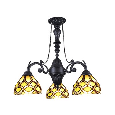 Chloe Lighting Lotus Tiffany-Style Geometric Stained Glass Inverted Ceiling Pendant 28" Width