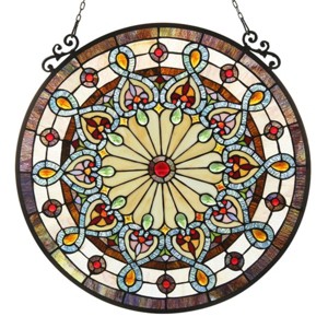 Infuse your home with Victorian charm using the Chloe Lighting Helena Tiffany‑Glass window panel. Crafted from 481 hand‑cut stained‑glass pieces and 21 dazzling crystals, this 23.5″ round panel captures the essence of classic Tiffany artistry. Framed in antique bronze‑finish metal and copper foil, it hangs gracefully with the included chain, transforming ordinary light into a rainbow of jewel tones. Ideal for bay windows, sunrooms, or entryways—each unique panel reflects warmth, elegance, and artisanal craftsmanship.
