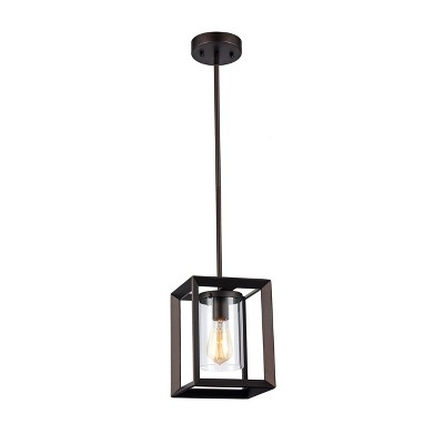The Chloe Lighting CH58037RB12-DP1 "Mycroft" Industrial-Style 1-Light Rubbed Bronze Ceiling Mini Pendant features a sleek, industrial design with a 12-inch wide metal shade and a clear ribbed glass diffuser. It includes a vintage Edison-style bulb and is UL listed for safety.