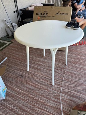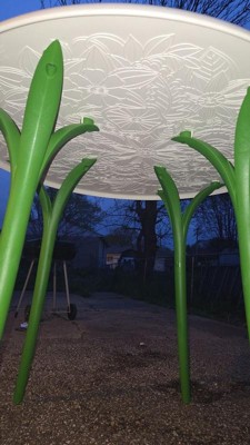 The Chloe Garden table is inspired by nature with its legs sprouting upward to its beautiful rounded top. This bistro table is made of durable polypropylene and can seat up to four people. You will find a pleasant surprise underneath the tabletop - an exquisite floral design. This round table is perfect for any outdoor setting. So gear up for casual cocktails and conversations on the patio with the Chloe table!