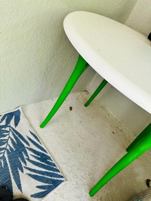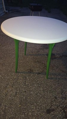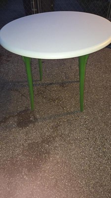 [This review was collected as part of a promotion.] Super cute durable table! Easy to put together just need a screw driver or drill. nice to just put a few cheap chairs with. Good to put food on or even just to chill outside with. the size is good not to big can go on a porch or in the grass!