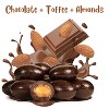 - DOUBLE WHAMMY: Enjoy the rich and indulgent flavors of both dark chocolate dipped and a toffee coating onto this crunchy almonds .