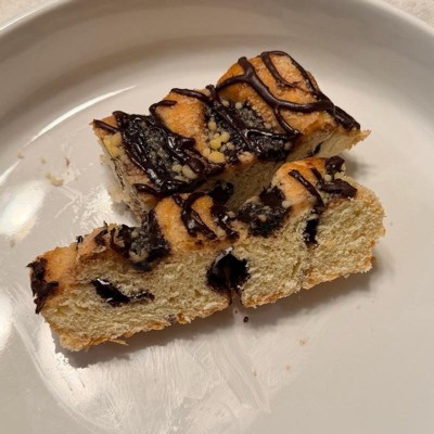 [This review was collected as part of a promotion.] This is the chocolate danish, it was good. To me it needed more chocolate drizzle or more of a chocolate flavor. It was a bit dry so the second time I ate it I cut a slice and heated it in the microwave for 15 seconds with butter and that solved the dryness issue and melted the chocolate, now that was really good, it was warm and soft and delicious.