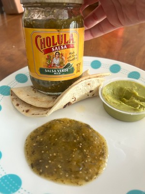 [This review was collected as part of a promotion.] Cholula Salsa Verde is a flavorful must-have for any salsa lover! With its perfect blend of tomatillos, jalapeños, and signature spices, this mild salsa delivers a fresh, zesty taste that complements just about any Mexican dish—from tacos and burritos to enchiladas and nachos. It's not too spicy, making it great for all heat levels while still packing a punch of bold, tangy flavor. I knocked off half a star only because I wish the jar were bigger—it's that good! Definitely a staple in my kitchen.