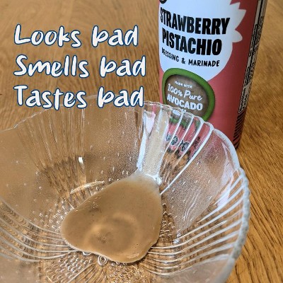[This review was collected as part of a promotion.] Not my favorite taste, but I'm interested in trying other flavors from this brand! I used this as a salad dressing. The taste was alright, but I would have loved more strawberry vs. pistachio! I thought it was a little thin for a marinade, but perfect consistency for salad. The brand has some many options for avocado dressings and oils...even Vegan options! I'll check them out next time I'm at the grocery store.