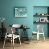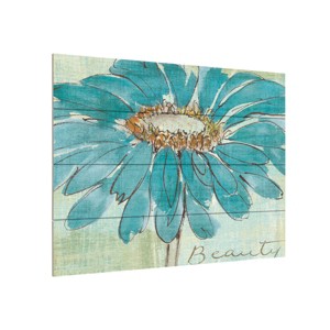 This ready to hang, gallery-wrapped multi panel canvas art set features a blue flower. Chris Paschke's comfort with the Sumi brush and continuing study with Asian masters have brought her 'lovingly into the world of passive, peaceful Zen concepts, and the simplicity of an Asian artist.' The minimalism she brings to Wild Apple in her soft grasses, florals, characters and handmade papers continues to flourish with new visions, colors and textural studies. Many trips to China have fueled her desire to learn more about the art form, and have led her to create a living environment in the mountains of central California. Giclee (jee-clay) is an advanced printmaking process for creating high quality fine art reproductions. The attainable excellence that Giclee printmaking affords makes the reproduction virtually indistinguishable from the original piece. The result is wide acceptance of Giclee by galleries, museums, and private collectors. Gallery wrap is a method of stretching an artist's canvas so that the canvas wraps around the sides and is secured a hidden, wooden frame. This method of stretching and preparing a canvas allows for a frameless presentation of the finished painting.