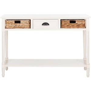 From coastal cottage to rustic lodge, this vintage styled Christa Console in distressed white lends welcoming charm to any entry hall or makes a wonderful focal wall in a living or family room. With rattan weave drawers and lower shelf, Christa is perfect for both storage and display.