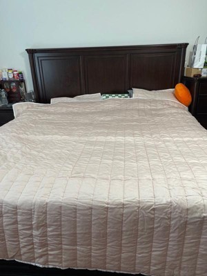 [This review was collected as part of a promotion.] I was really impressed with how plush and soft this quilt set was. It has a 300 thread count so it’s good quality. I also liked the blush color. It was soft and not too in your face. I didn’t have any trouble fitting this on my queen size bed. We’re sleeping like royalty :)