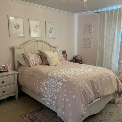 [This review was collected as part of a promotion.] My daughter loves her Christian Siriano Confetti Flowers 3 Piece Full/Queen Duvet Cover Set. This set is really cute and girly. The 3D flowers are adorable, feminine and unique. The material is nice quality, soft and comfortable to sleep with. It fits her queen comforter well and the matching shams fit her standard size pillows perfectly. It fits her bed great and looks beautiful in her room.