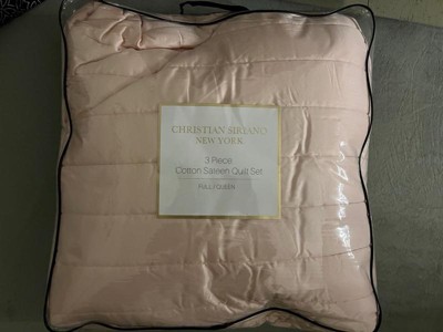 Christian Siriano NY® is renowned for its commitment to quality and style, and this quilt set exemplifies that dedication. Crafted from premium 100% cotton with a luxurious 300 thread count sateen weave, this quilt set offers a silky-smooth feel and a lustrous sheen that exudes elegance. The quilt is generously filled with plush 100% polyester fiber filling, providing the perfect balance of warmth and comfort for a restful night's sleep. This exquisite set includes a sumptuous quilt and coordinating shams, meticulously crafted to elevate the ambiance of your bedroom with its upscale fabric and traditional solid color look. Transform your bedroom into a sanctuary of relaxation and sophistication with the Christian Siriano NY® Cotton Sateen Quilt Set. Embrace the timeless beauty and upscale allure of this exquisite bedding ensemble, designed to enhance your sleep experience and elevate the beauty of your home. OEKO-TEX Standard 100 Certification ensures that this set meets stringent global standards for textile safety and environmental sustainability, providing you with peace of mind as you indulge in its luxurious comfort. Face and reverse of quilt and shams are made of 100% cotton, 300 thread count sateen woven fabric. Quilt is filled with 100% polyester down alternative fiber filling. This item is machine washable, but please be sure to use appropriate sized machinery to avoid any excess wear on the items. Includes: one quilt 92 inches wide by 96 inches long and two standard shams 26 inches wide by 20 inches tall.