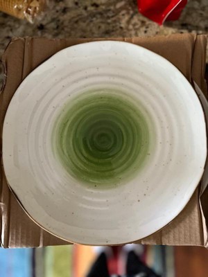 [This review was collected as part of a promotion.] These plates are fantastic!!! Just received them today, and they are so durable. These plates are ceramic, dishwasher safe and microwave safe. This set comes with small plates, dinner plates, deep bowls and wide dinner bowls. The plates have a curved edge which is really cool! The pop of color with the green is a really nice touch. The only reason this isn’t a 5 star review is due to a design choice. With the green, there is some brown speckling inside the plates where food goes. It’s definitely intentional, but I will absolutely go nuts thinking they still aren’t clean when I finish washing them or taking them out of the dishwasher. Every one of these will be washed two times out ok f precaution. Other than that, AMAZING PLATES!