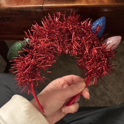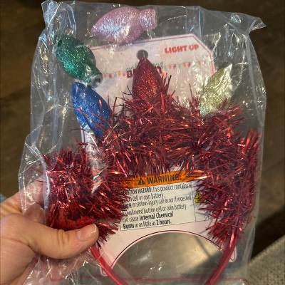 Christmas Bulb Light-Up Tinsel Headband - Red