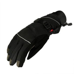Look great and feel warm on the slopes in our soft shell microfleece lined winter gloves 150-gram Thinsulate insulation for extremely cold conditions Reflective piping accents Touch technology fingertips Special conductive material interwoven into the fingertips allows you to operate the touchscreen of your smartphone or other electronic device while wearing the gloves Will not damage or scratch your screen Pre-curved construction Bungee gauntlet closure to keep out the snow Adjustable sport wrist closure with hook and loop strap ensures a snug, comfortable fit Kevlar palm and fingertips provide superior grip and dexterity, and increase life of the glove Stowaway pocket for heat pack or keys, with compass zipper pull Goggle wipe on thumb Care instructions: hand wash cold Color: black Size: medium Material(s): Shell: polyester Lining: polyester