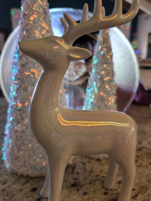 Poised and peaceful, this Christmas Ceramic Iridescent Deer Figural from Wondershop™ adds a seasonal accent to your decor. Made from ceramic, this figural decor features a white deer in an iridescent white finish with branched antlers for an eye-catching look. Whether displayed solo or as part of festive vignette, this timeless piece captures the quiet magic of the wintry season.