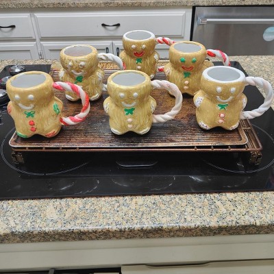 A: Hello Crafter- We appreciate your interest in this Christmas Craft Ceramic Gingerbread Mug Painting Activity Kit. It is 4 in H x 5.57 in W (including handle) x 3 in D. We know you will enjoy it. – Auria