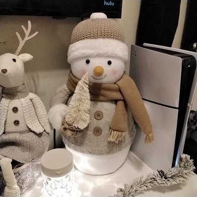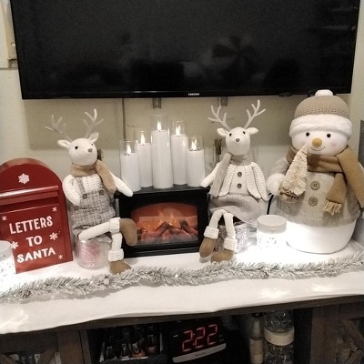 Lend festive woodland vibes to your seasonal decor with this Christmas Fabric Reindeer Boy Figural from Wondershop™. The Christmas figurine features a reindeer dressed in a long-sleeve tee and overalls with a knitted scarf wrapped around the neck and faux-fur boots for an adorable look. Designed to sit on a flat surface, you can display it on any shelf, tabletop or mantel, either alone or paired with other holiday figurines.