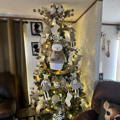 I knew as soon as I saw this adorable snowman that he and the matching boy and girl reindeers also purchased at Target would be the centerpiece decorations for my Christmas tree this year. It worked beautifully! I’m loving the neutral look on my big Christmas tree.