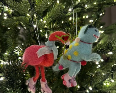 Christmas Felted Wool Flamingo with Skate Ornament - Wondershop™