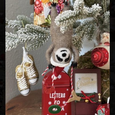 - Felted wool sloth "Joy" Christmas tree ornament