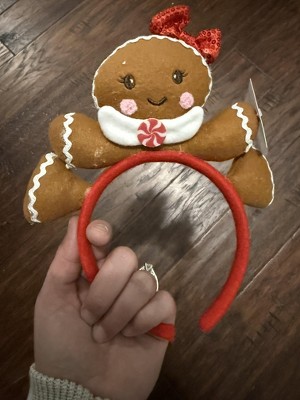 Add a sweet, festive touch to your outfit with this Christmas Female Gingerbread Headband from Wondershop™. The Christmas headband is covered in red fabric and features a female gingerbread figure dressed with a peppermint bow tie and sequin bow tie accent at the top for a lovely look. Made of polyester material, this Christmas headband is great for securing and styling all hair types.