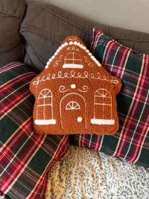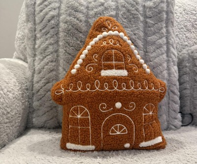- Christmas gingerbread house-shaped throw pillow