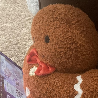 Bring sweet holiday charm to your home with this Christmas Gingerbread Man Throw Pillow from Wondershop™. Shaped like a Christmas gingerbread man, this novelty plush pillow showcases a brown surface accented with black embroidered face detailing, a red bow on neck, beige button accents on the body and white zigzag lines on the arms and legs for an authentic look. The decorative pillow has a fuzzy faux-fur exterior and padded interior to offer a plump feel, and you can display it solo or arrange it on a couch or armchair with other accent pillows.
