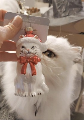 I love this! It is the closest ornament I've found that resembles our cat! We have glass ornaments on the one tree and most of our pets in glass ornaments so im thrilled to have found this one. We rescued a Chincilla Persian last year and he's decided to stay with us so it's 3xciting to add him to our family tree. The ornament is well done and affordable. He approves!