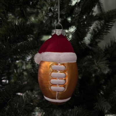 Christmas Glass Football with Santa Hat Ornament - Wondershop™