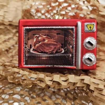 Get your tree holiday-ready with this fun and festive Christmas Glass Oven Ornament from Wondershop™. Made from glass, the Christmas tree ornament is shaped like an oven with a roast inside and allover sparkly detailing for the perfect seasonal look. Easy to coordinate with a variety of other holiday ornaments, the oven ornament is topped with a golden crown and an attached loop that makes it easy to hang from your Christmas tree.