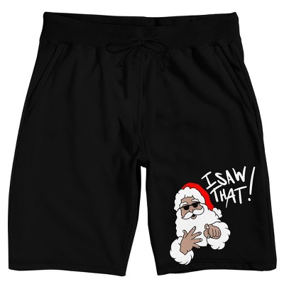 Christmas Humor "I Saw That!" Santa Men's Black Sleep Pajama Shorts - 1 of 3