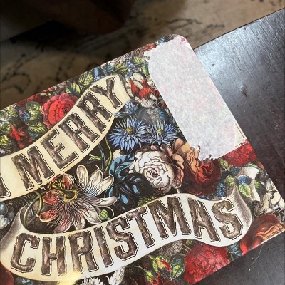 A: Hi, I bought the holly shortbread cookie tin. The stickers peeled off .They didn't have the Merry Christmas tin so I'm ordering it online.