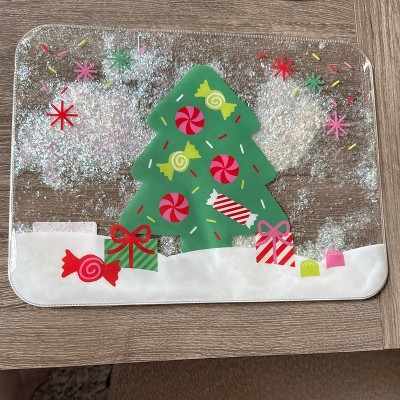 A festive addition to the table this holiday season! Love the glitter. The material is easy to clean and looks adorable, and the mat doesn’t slide around too much on the table.