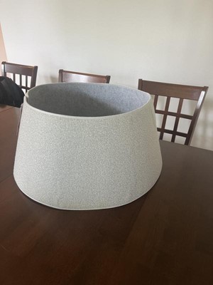 A: Hello Gilll - We appreciate your interest in this Christmas Roll Up Gray Boucle Tree Collar. Dimensions Overall is 25in (L) x 25in (W) x 12in (H)) . I hope this information helps. – Ryan