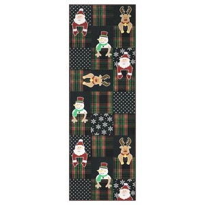 Christmas Runner Rug, Snowman Reindeer Plaid Print, Washable, Non-Slip, Bedside Entryway Decor