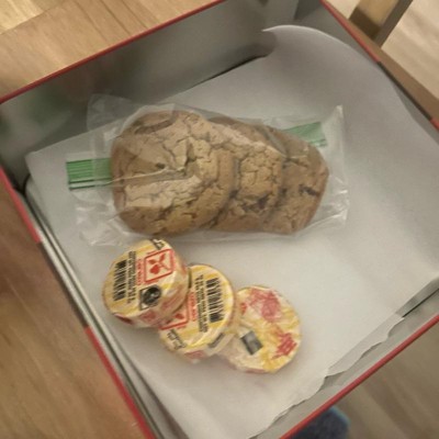 [This review was collected as part of a promotion.] I received this tin and really like it. The colors are perfect for Christmas and the belt decor looks like Santa’s belt. The lid fits securely and will keep treats fresh. The tin was dented when I received it so I will be replacing it. I think picking it up at the store would be better than shipping it. Over all it’s a perfect little gift tin.