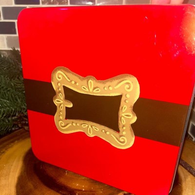 Make your holiday presents extra special with this Christmas Santa Belt Tin Gift Box from Wondershop™. The Christmas gift tin is designed in a square shape and features Santa belt detailing at the front for festive appeal. Made of metal, the gift tin is perfectly sized to pack gift cards and other small presents.
