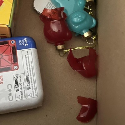 The string on the ornament wasn’t secure, as we hung it on the tree, it broke and 2 of the bears hit the ground and shattered.